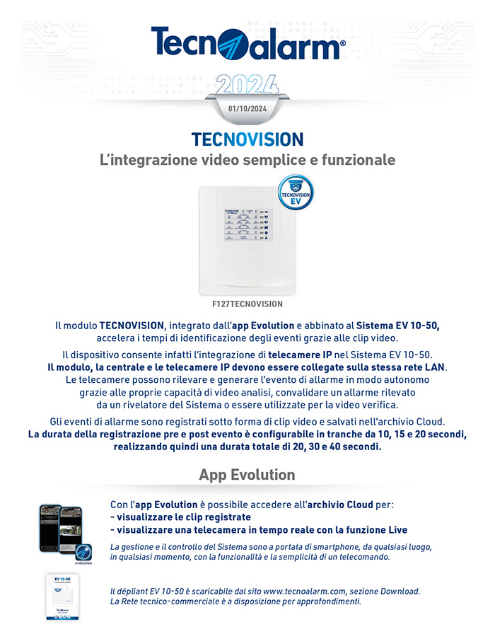 • TECNOALARM – TECNOVISION L’integrazione Video è arrivata